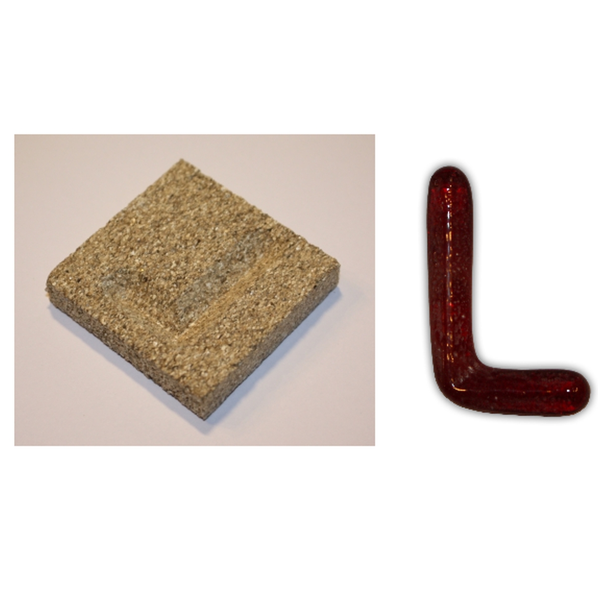 Vermikulitova forma Pismeno L, na formu je potřeba cca 10g frity, rozmery formy delka: 65mm x sirka: 65mm x vyska: 15mm